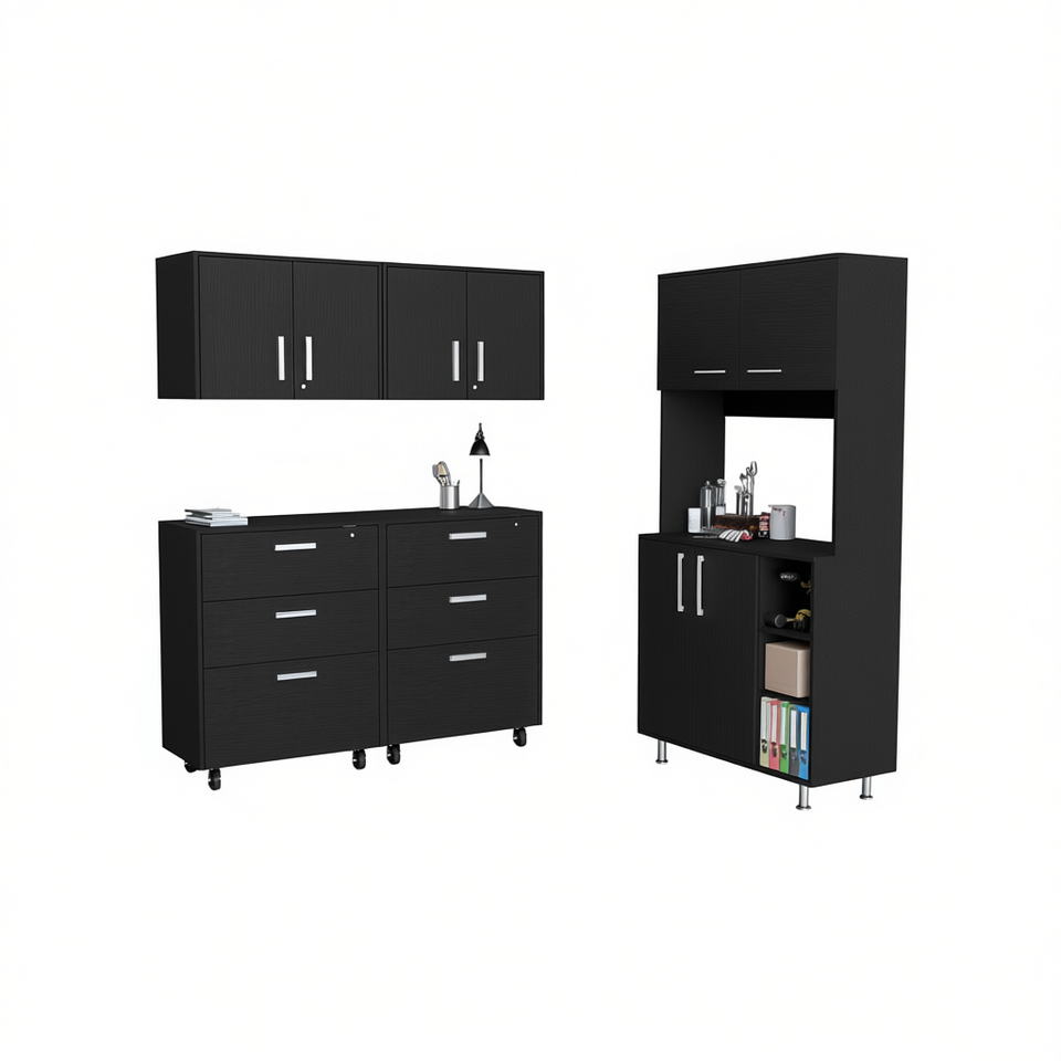 Set di 5 Pezzi per Organizzazione Officina con Armadietti e Cassetti Neri per Garage