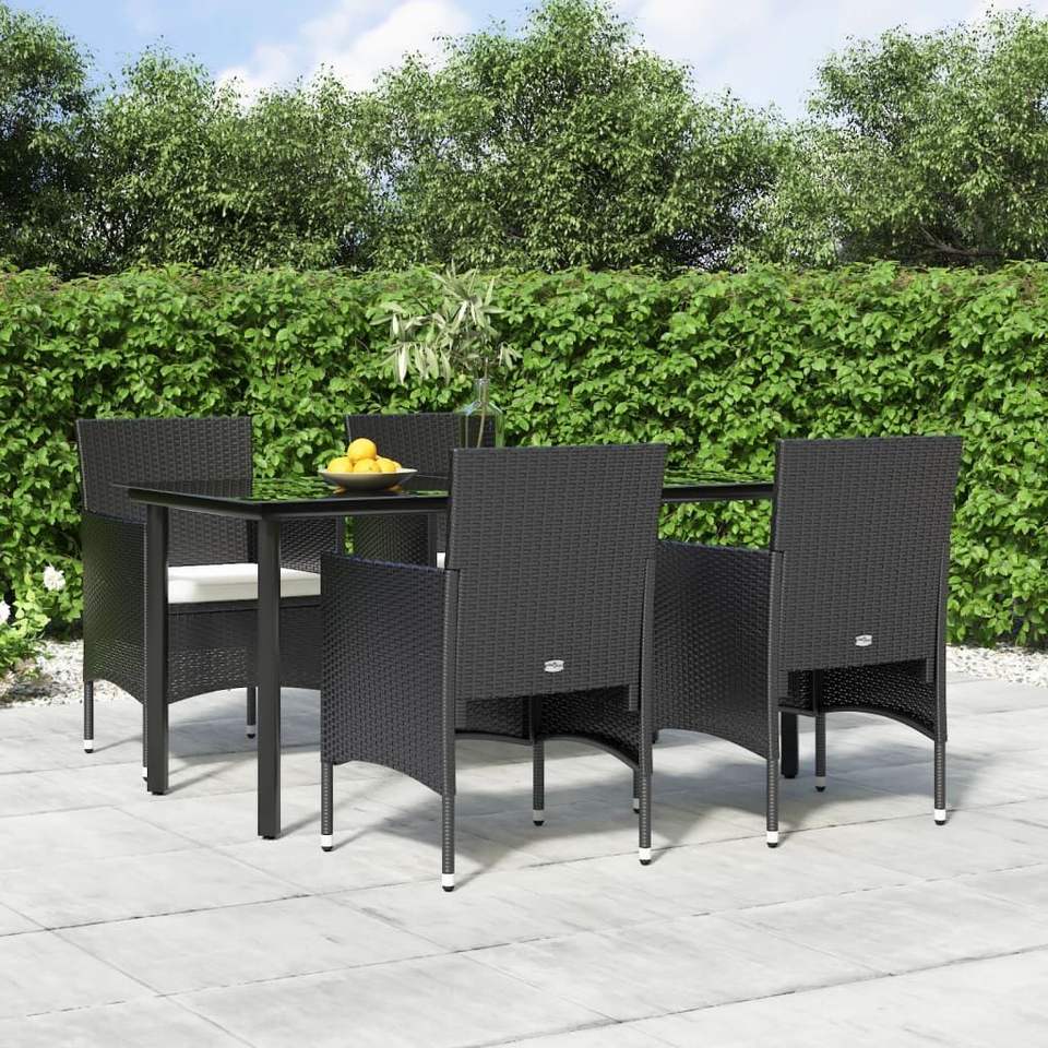 Set da pranzo Patio 5 pezzi nero con cuscini per il tempo libero in giardino