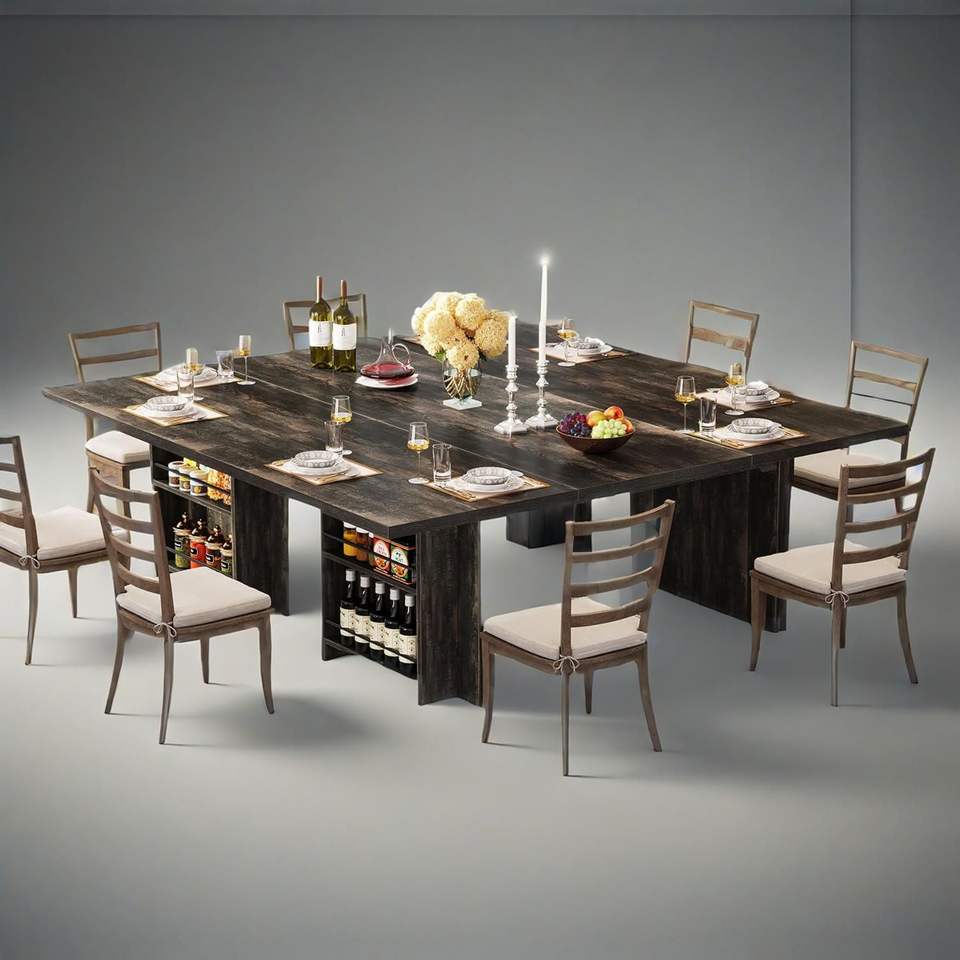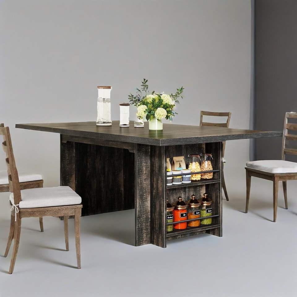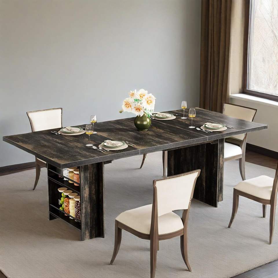 Tavolo da Pranzo Rettangolare Nero da 160 cm con Contenitore per Cucina, per 4 Persone