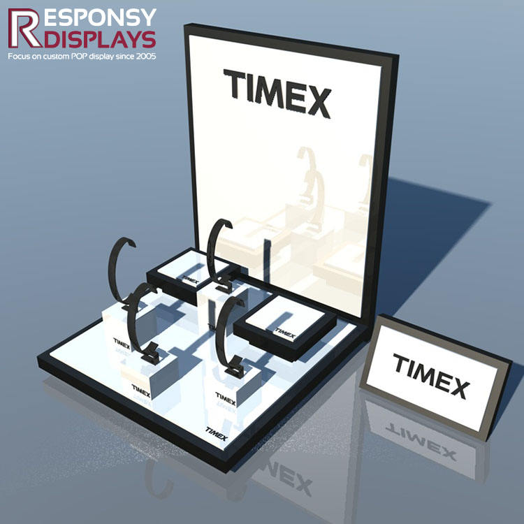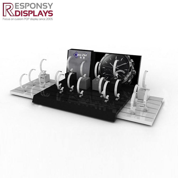 Espositore da banco in acrilico nero orologio di lusso serie vetrina organizzatore per negozi di gioielli al dettaglio espositivi Boutique