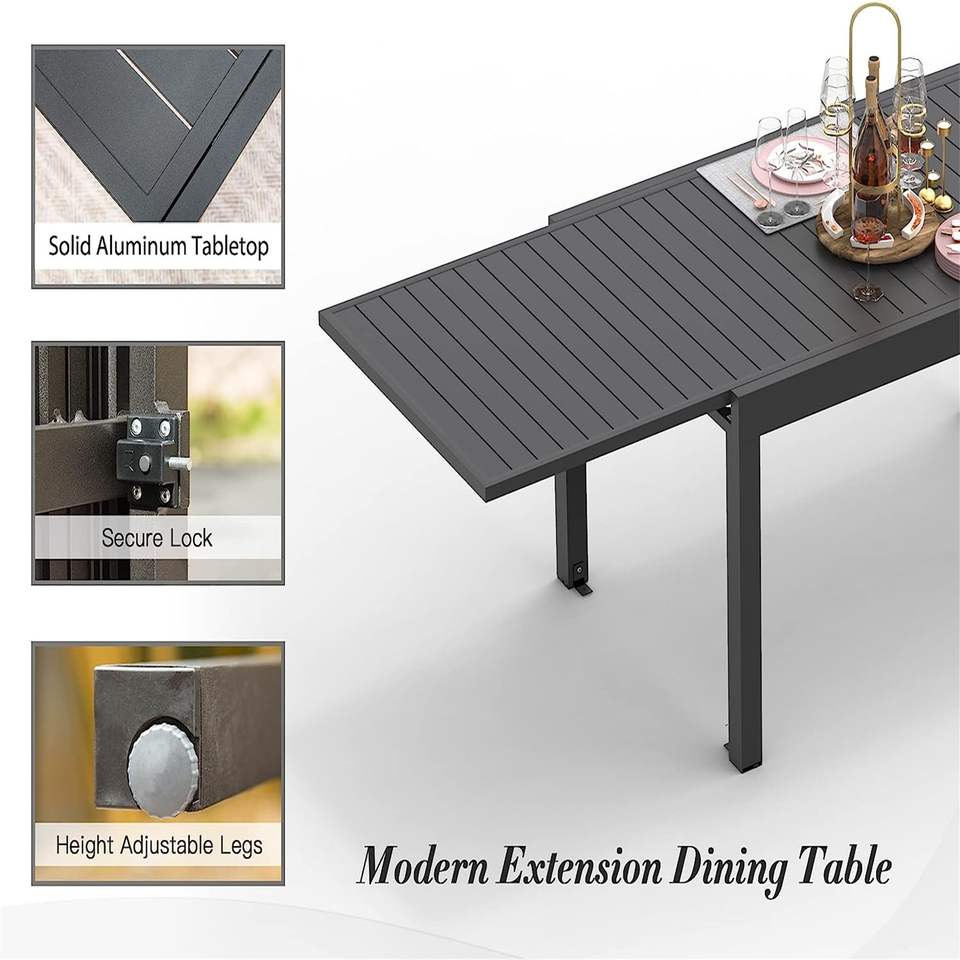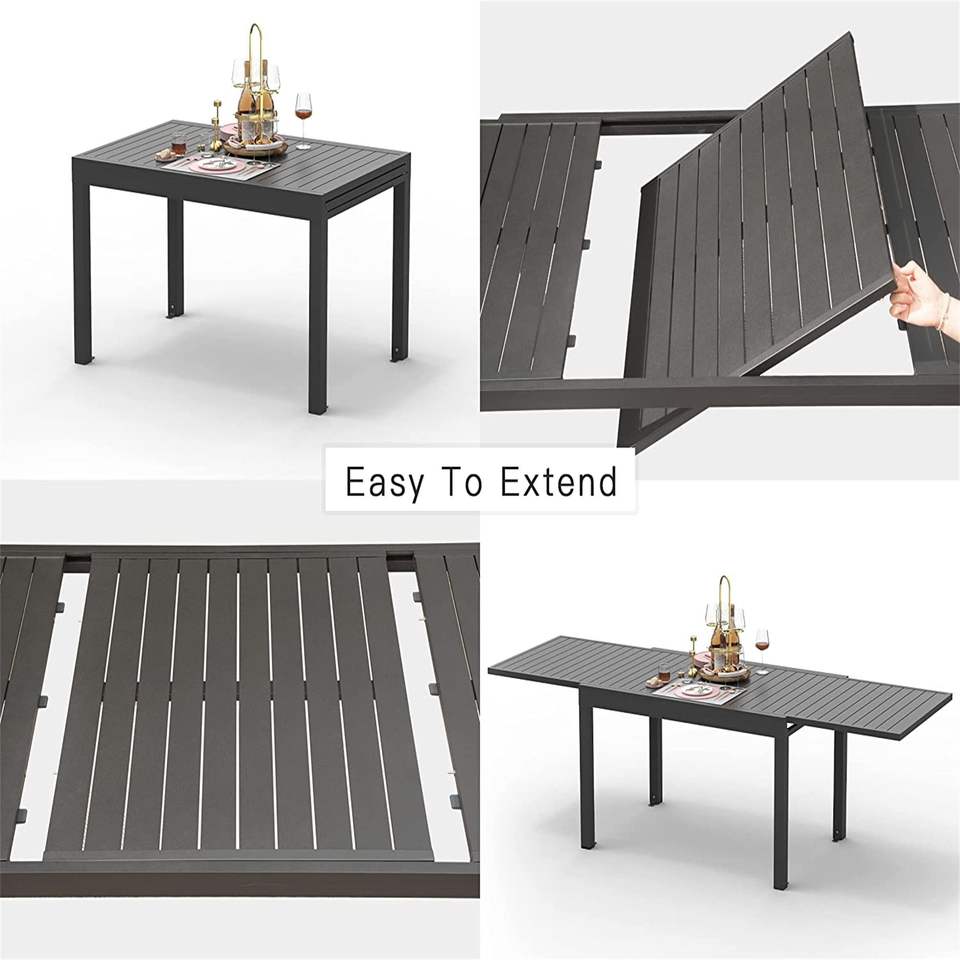 Tavolo da Pranzo Estensibile in Alluminio Nero per Esterni, Rettangolare, per 6-8 Persone, Ideale per Giardino, Prato, Portico, Bistrot