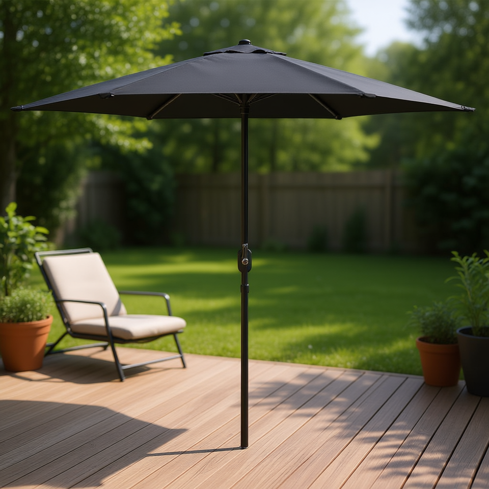 Black Aluminum Patio Umbrella 106.3 X 96.9 Inches Manual Tilt Sun Shade Outdoor Garden Parasol With Base