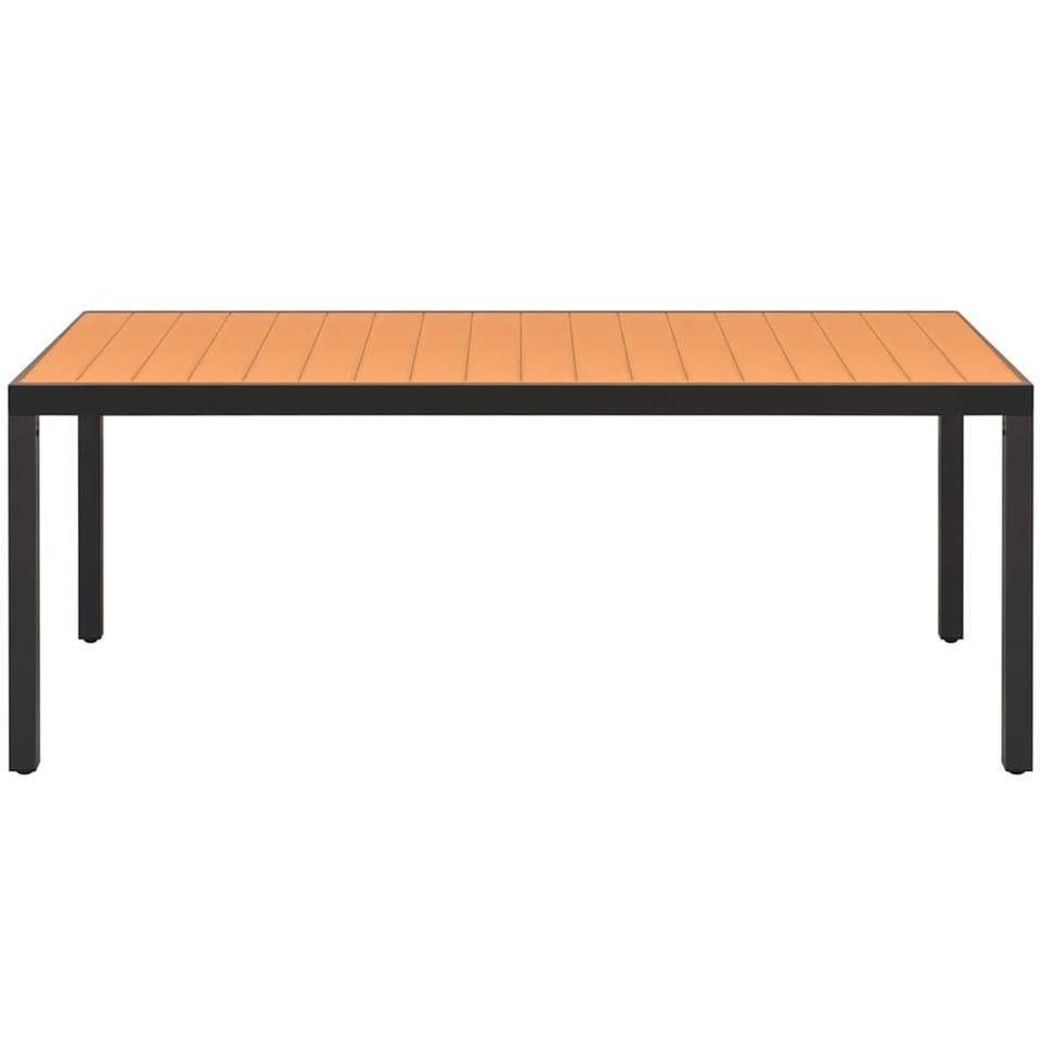 Set da pranzo da giardino nero e marrone per 6 persone, con struttura in metallo e piano in legno massello, mobili da esterno dal design contemporaneo, resistenti alle intemperie