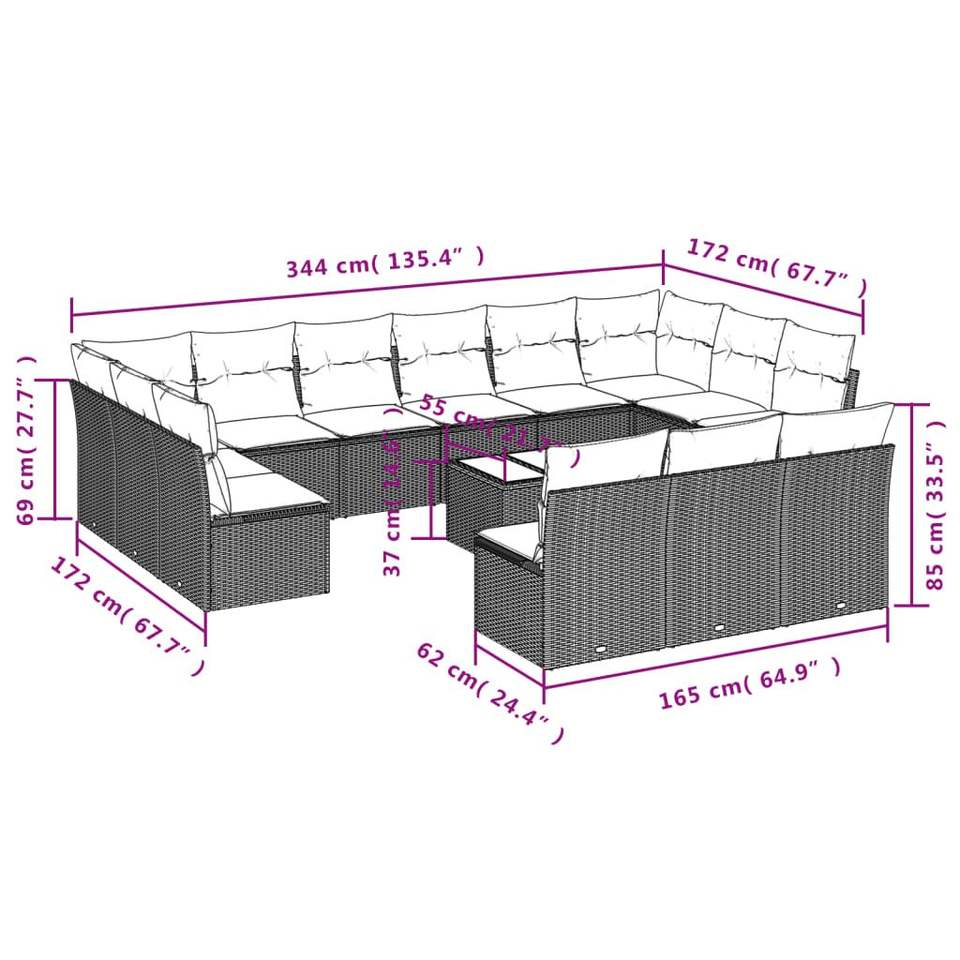 Set Divano da Giardino Nero e Crema con Cuscini, Arredamento da Esterno in Rattan PE Resistente ai Raggi UV, Design Contemporaneo Impermeabile