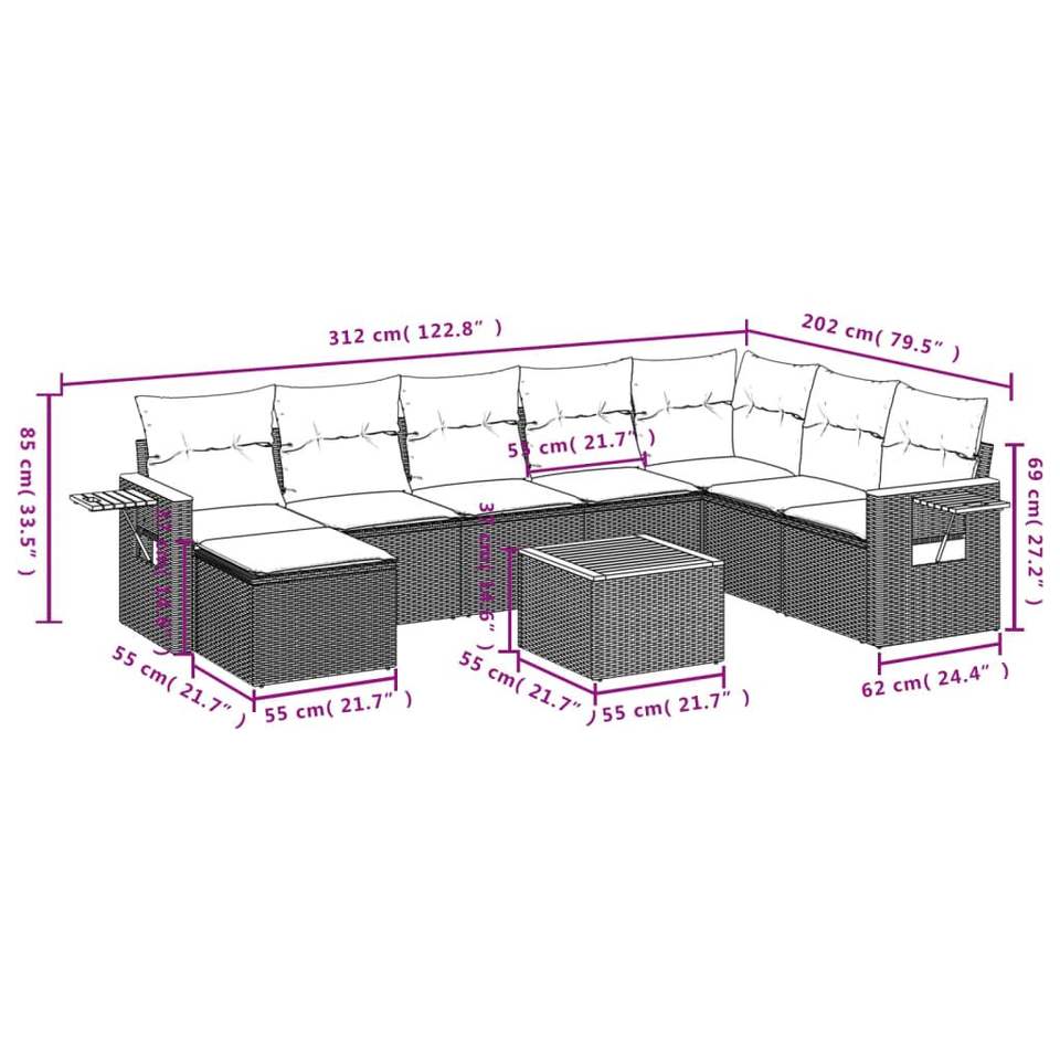 Set Divano da Giardino Nero e Crema con Cuscini, 6 Posti, in Rattan, Arredamento da Esterno dal Design Contemporaneo