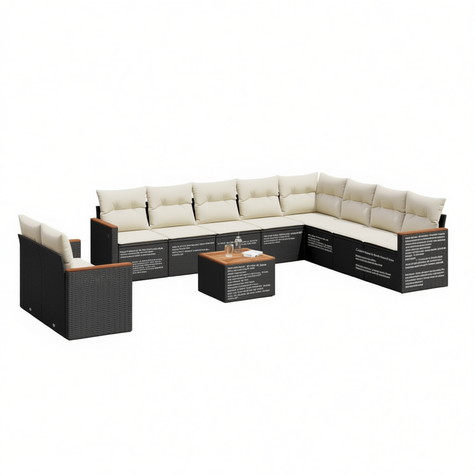 Set Divano da Esterno in Rattan Bianco Crema e Nero, 7 Posti, Design Moderno e Contemporaneo