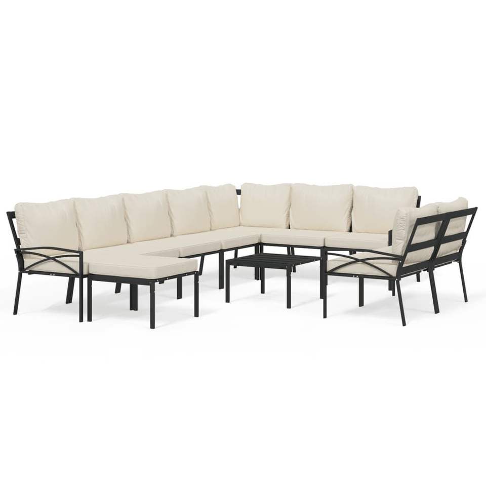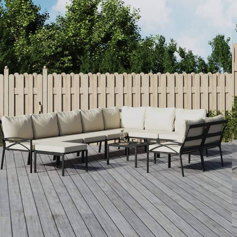 Set Lounge da Esterno Nero e Sabbia D0100H790IX in Acciaio Verniciato a Polvere, Arredamento da Giardino per 6 Persone, Design Contemporaneo