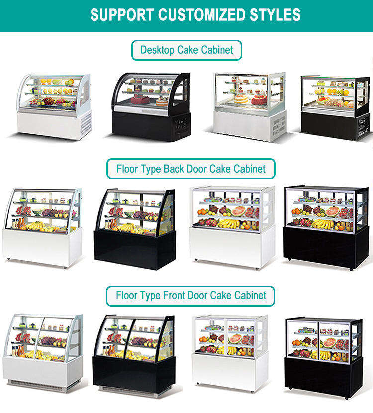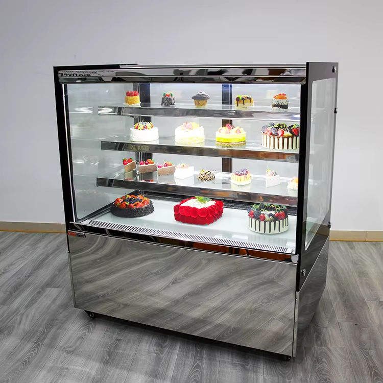Chiller con angolo nero a 2 strati per torta di lusso commerciale con vetrina per Chiller per torta