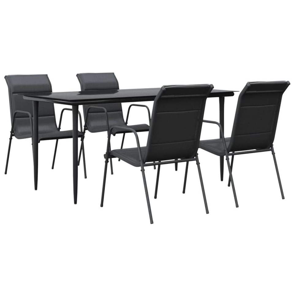 Set da Pranzo da Giardino Nero Antracite con Struttura in Acciaio, 4 Posti, Resistente alle Intemperie, Arredamento da Esterno dal Design Minimalista