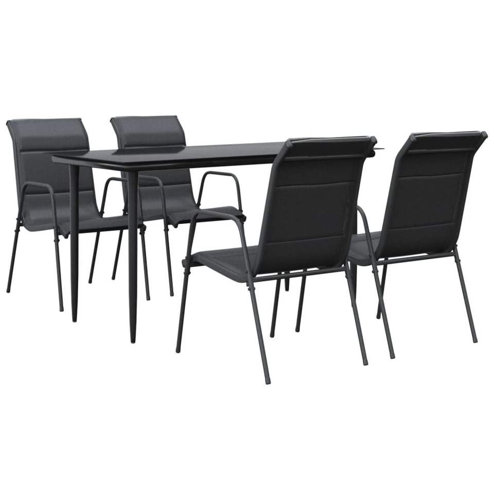 Set da Pranzo da Giardino Nero Antracite per 4 Persone, Struttura in Acciaio Resistente alle Intemperie, Arredamento Minimalista da Esterno