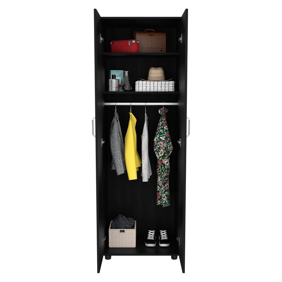 Black Barkley Bedroom Slim Armoire Elegant Wardrobe for Bedroom Storage