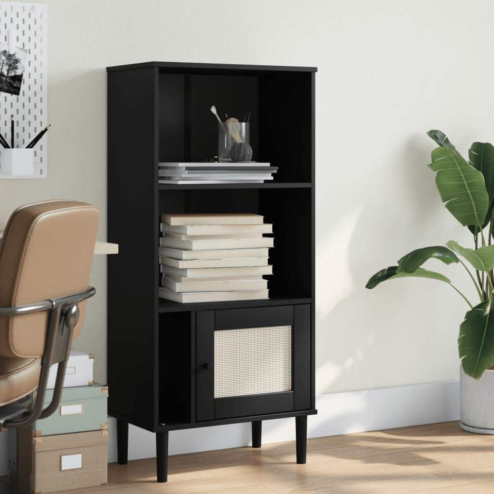 Libreria Nera a 3 Ripiani con Anta, Design Moderno e Minimalista per Ufficio Domestico, Mobile Contenitore