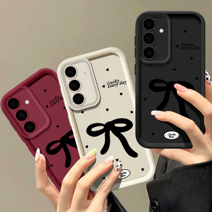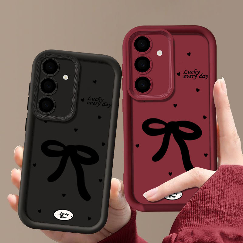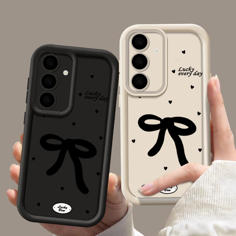 Custodia Morbida con Fiocco Nero per Samsung Galaxy A16 A15 A55 A56 A54 A52 A35 A14 A53 A26 5G S25 S24 S23 Ultra S22 Plus S24 FE Cover per Telefono