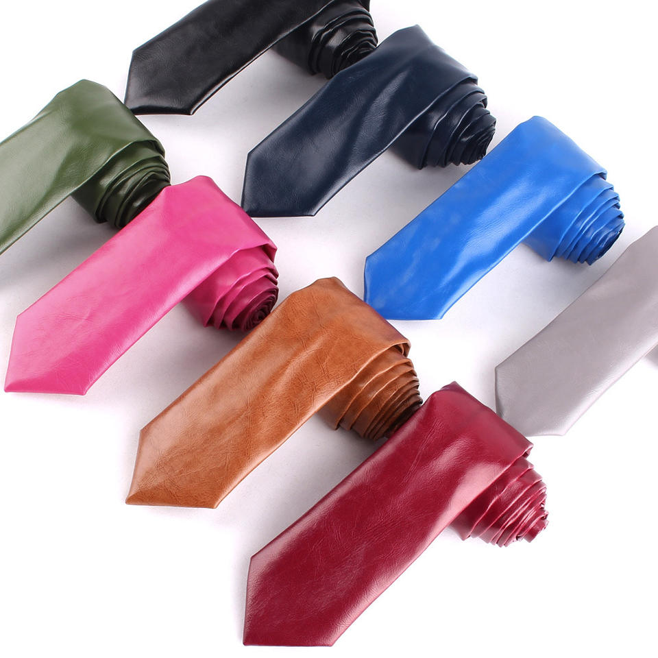 Black Brown Casual Mens Leather Slim Narrow Neck Ties 5.5cm for Wedding