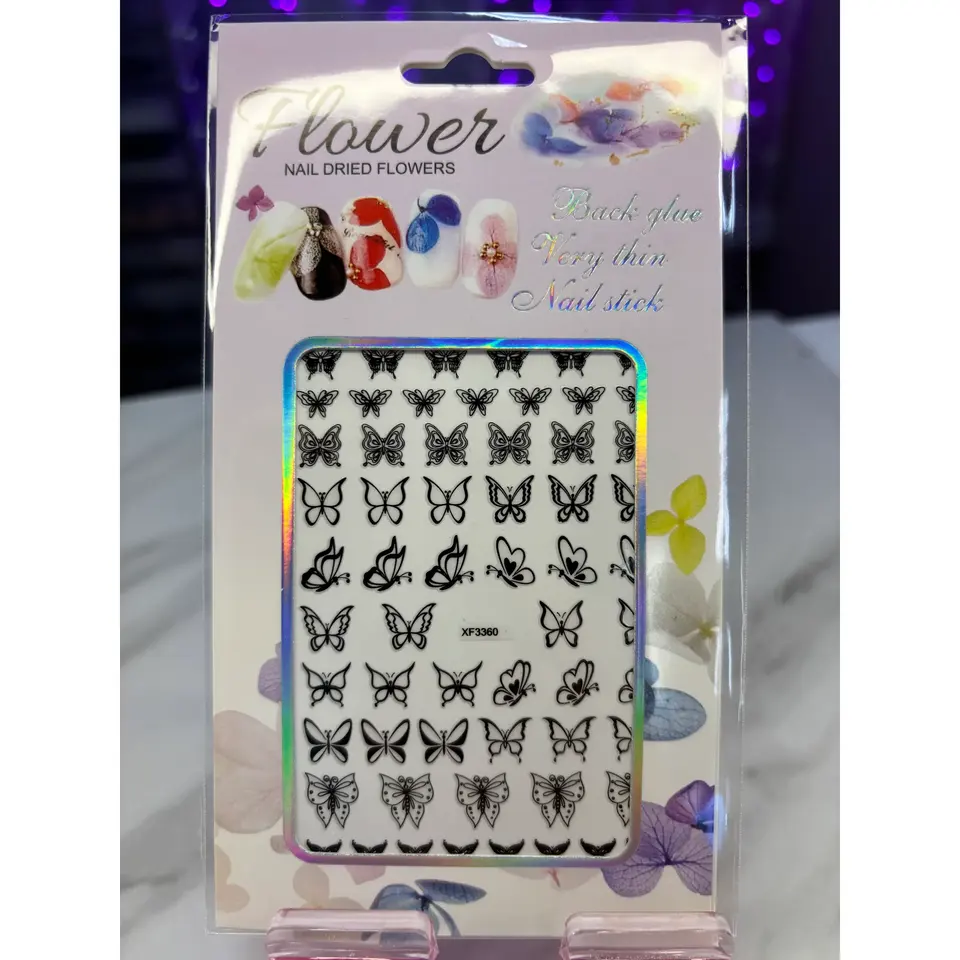 Black Butterfly 2D/3D Nail Foil Decals Hot Sale Heart-Shaped Sheet for DIY Manicure Art Plastic Material