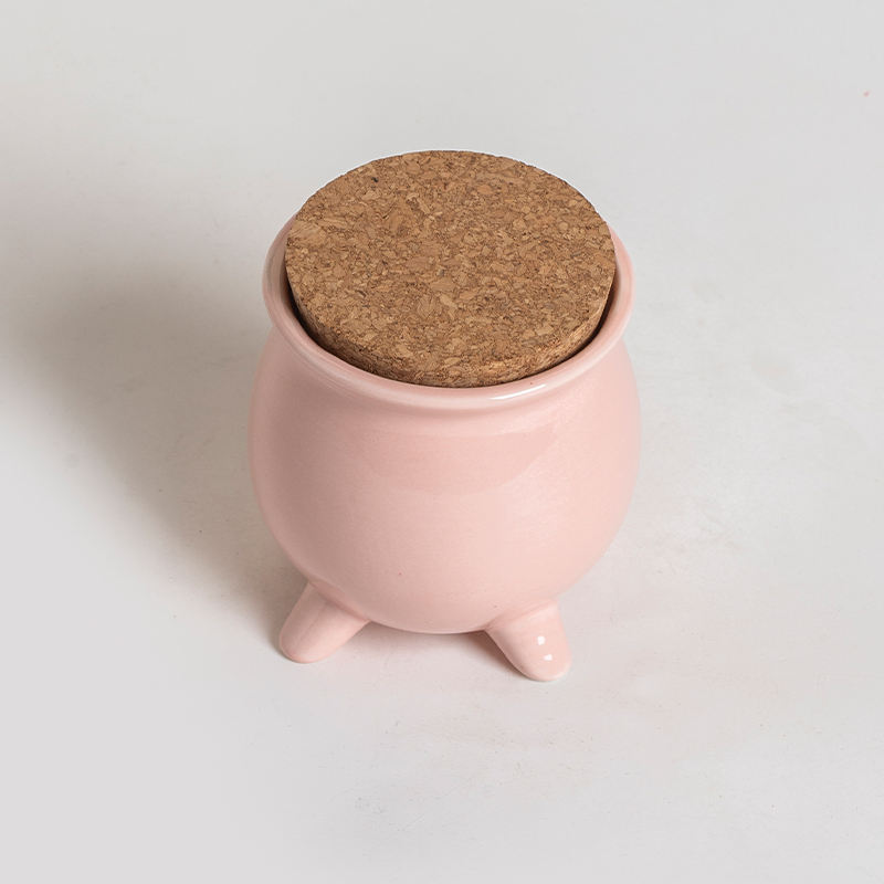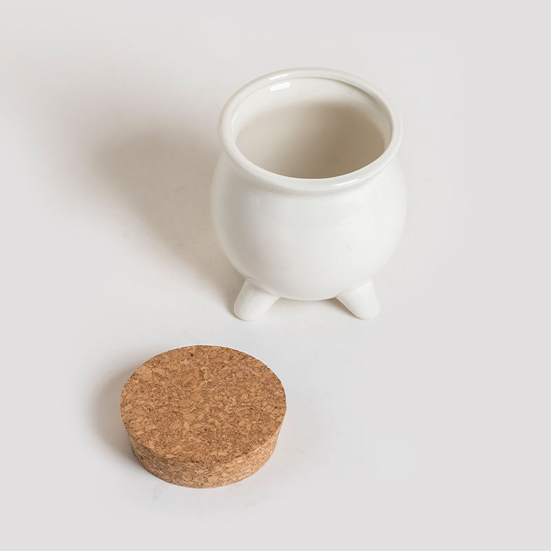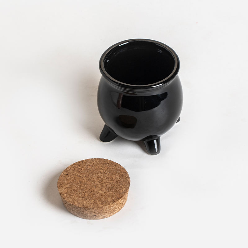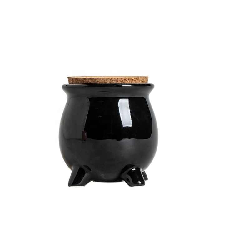 Barattolo in Ceramica Nera a Forma di Calderone per Spezie, Contenitore Creativo con Coperchio in Sughero per Zucchero e Alimenti