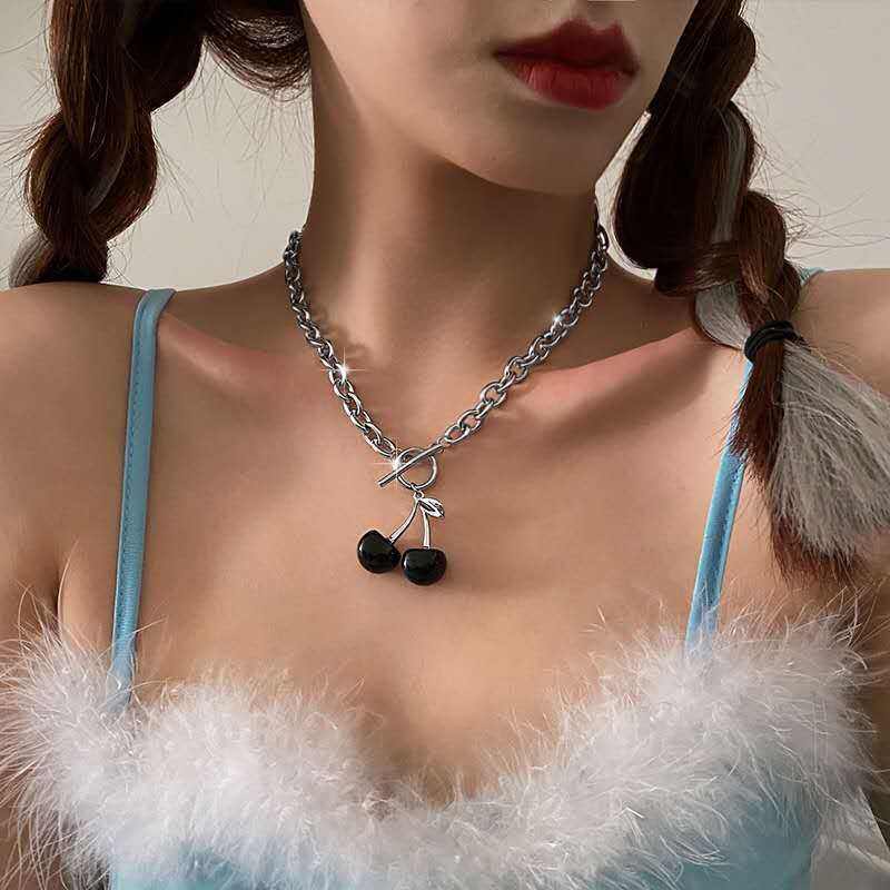 Collana di ciliegie nere, catena di clavicola da ragazza in stile scuro, coreano Versatile collana di celebrità retrò su Internet N800281