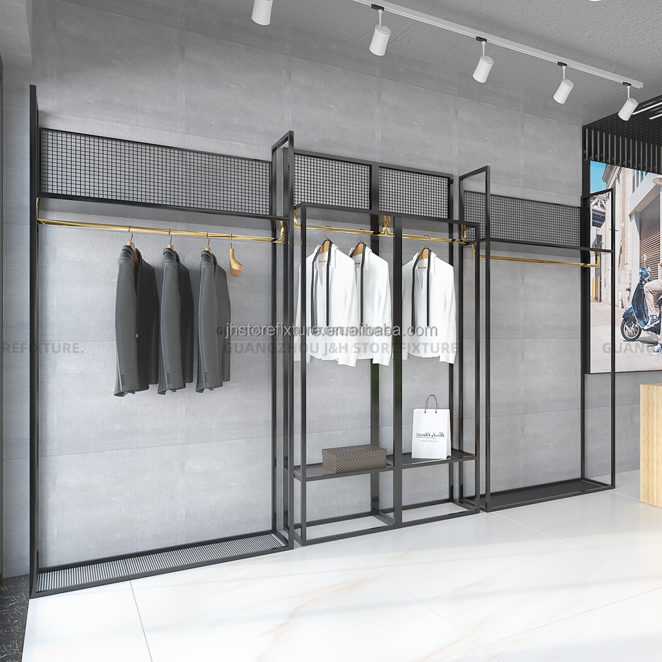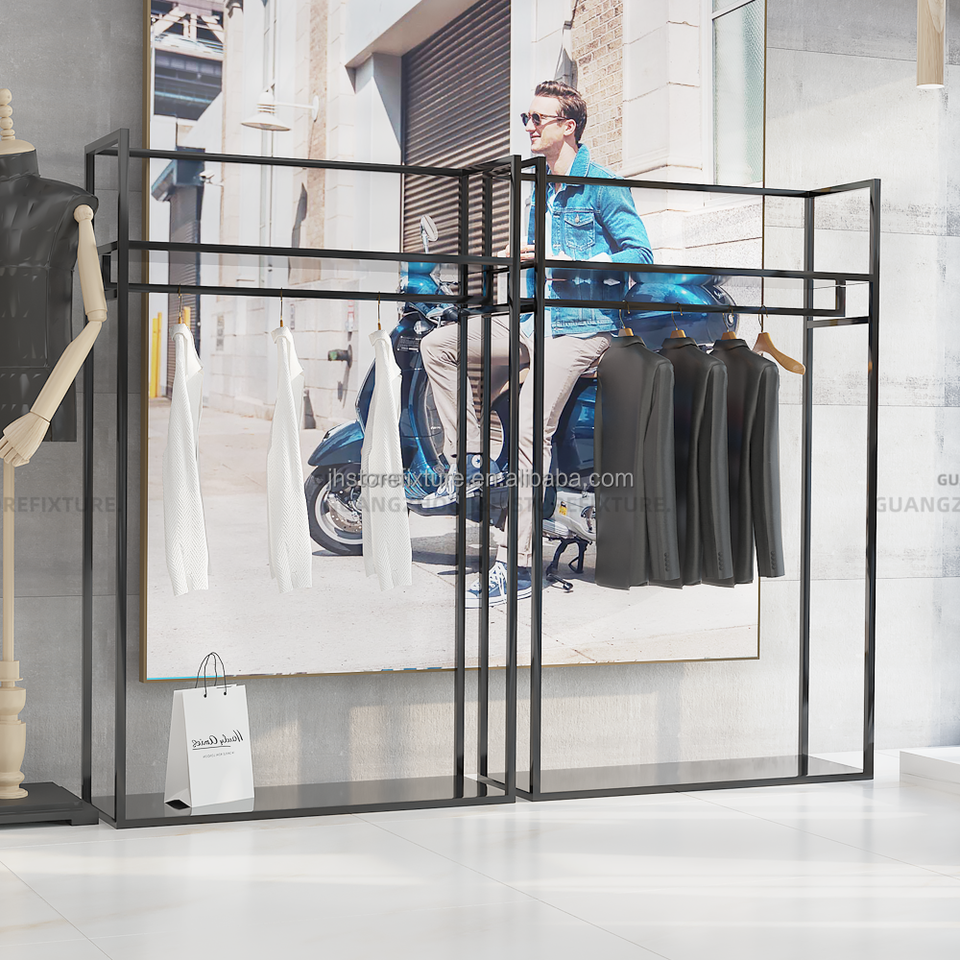 Scaffali per scarpe per abbigliamento nero per negozio di abbigliamento espositori per uomo per negozio di moda espositore per abiti da sposa per uomo