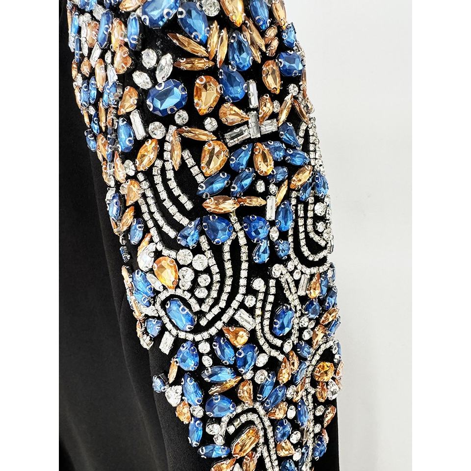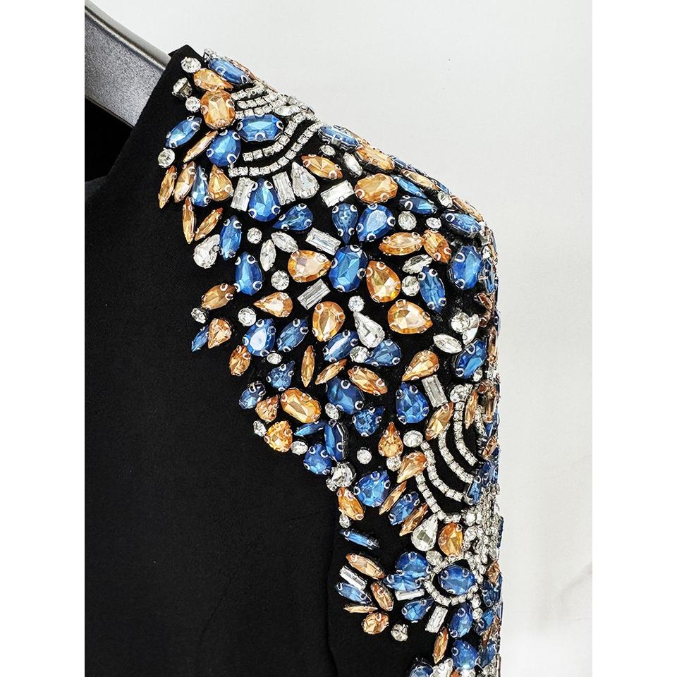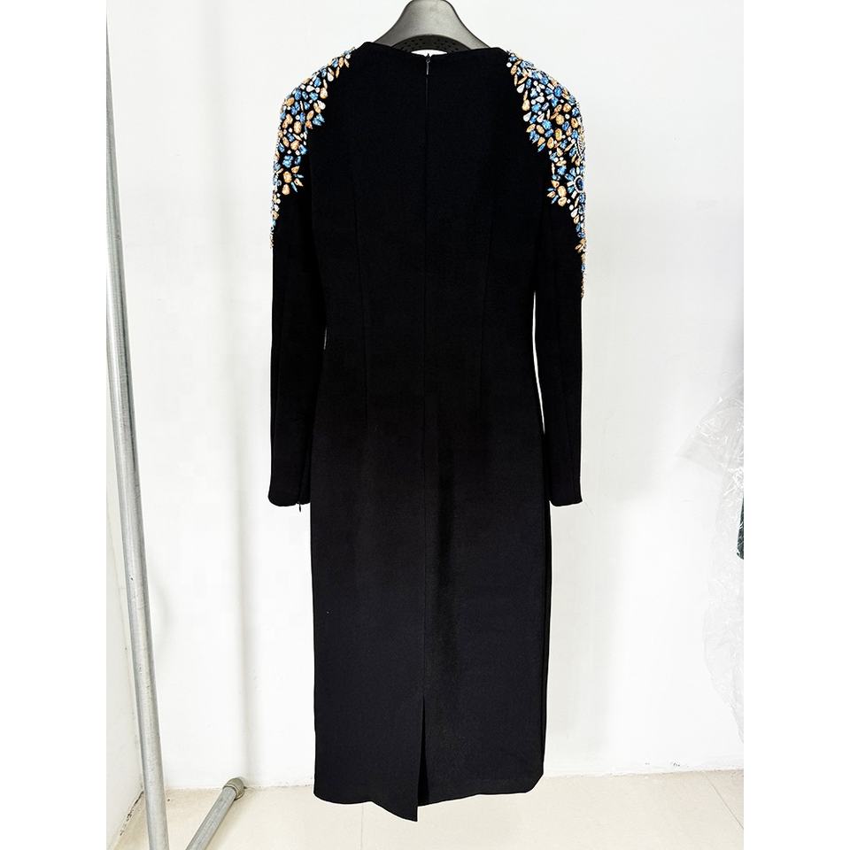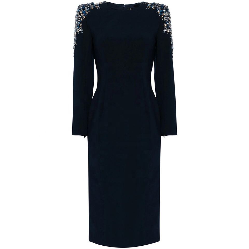 Black Cocktail Dresses Luxury Crystal Long Sleeves O-Neck Short Gowns Sheath Women's Evening Party Dresses Vestidos