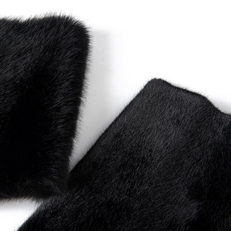 Black Color 100% Polyester Faux Fur Fabric Mink fox Fur Fabrics for Hood Scarves , Winter Ponchos, Ladies Pullovers