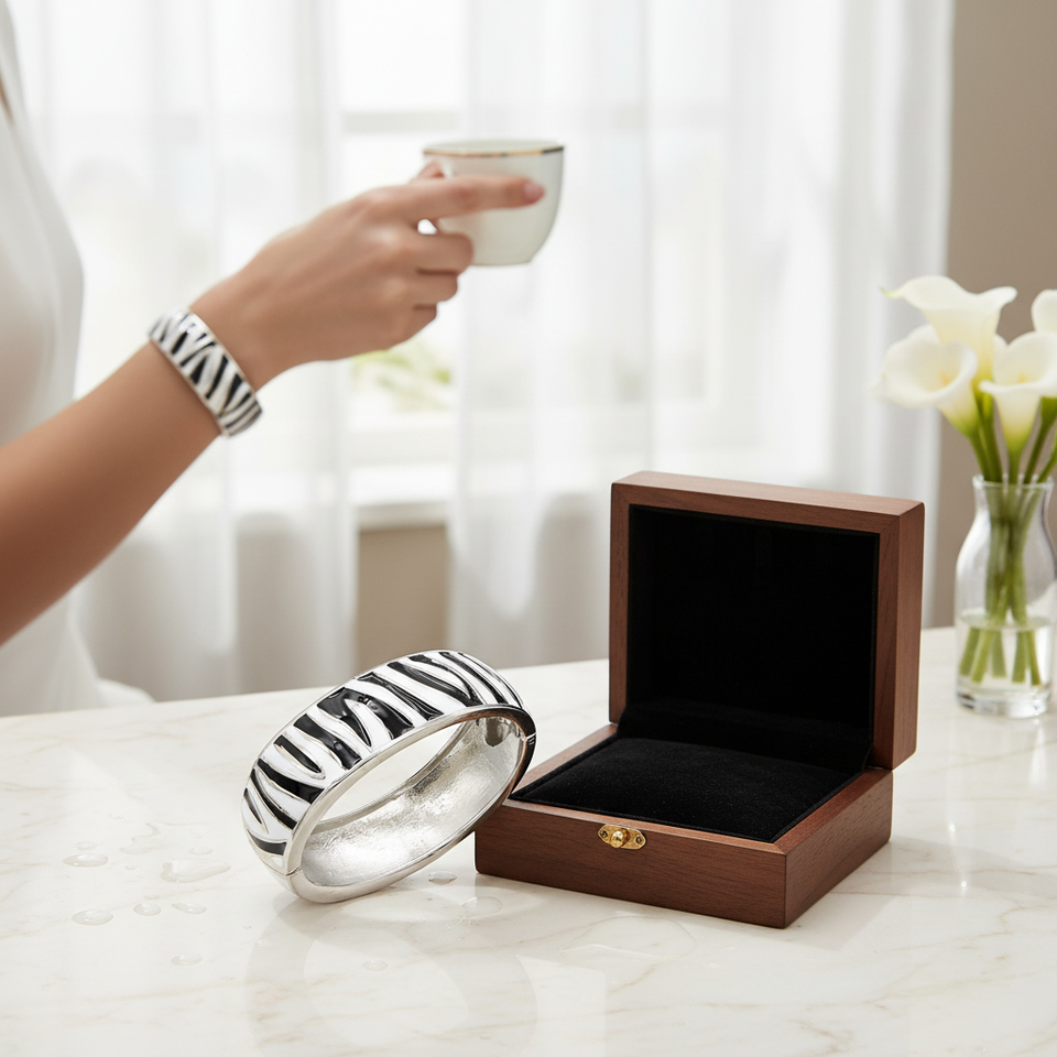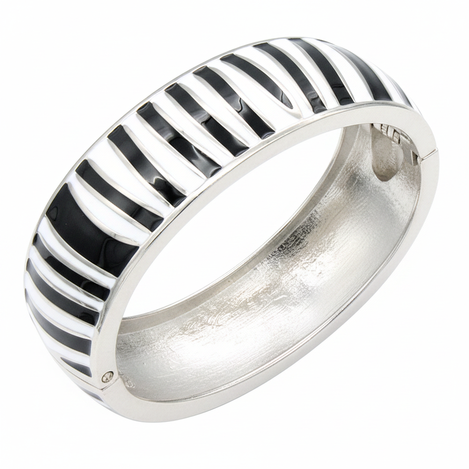 Braccialetti a cerniera in smalto di colore nero placcati gioielli pregiati in rodio