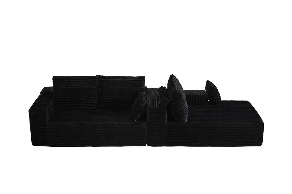 Black Corduroy L-Shaped Sectional Sofa with Chaise | Boneless No-Frame Modular Lounge Couch for Living Room & Apartment