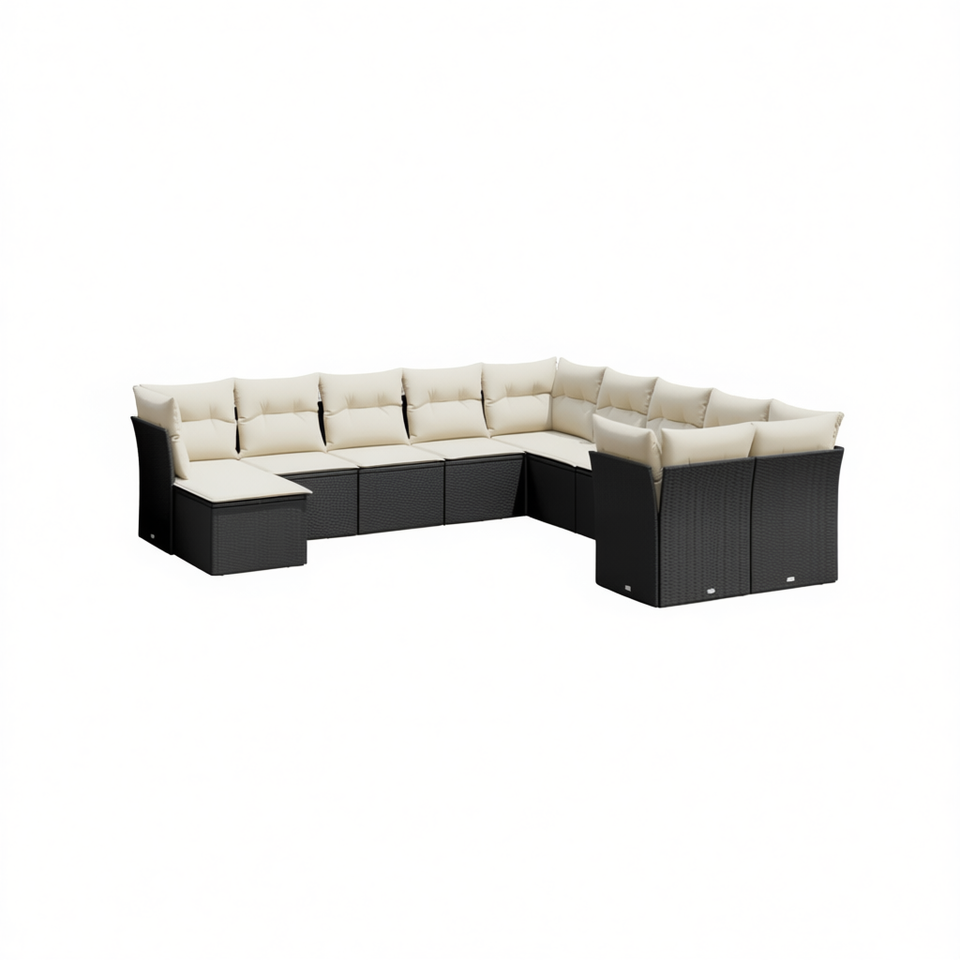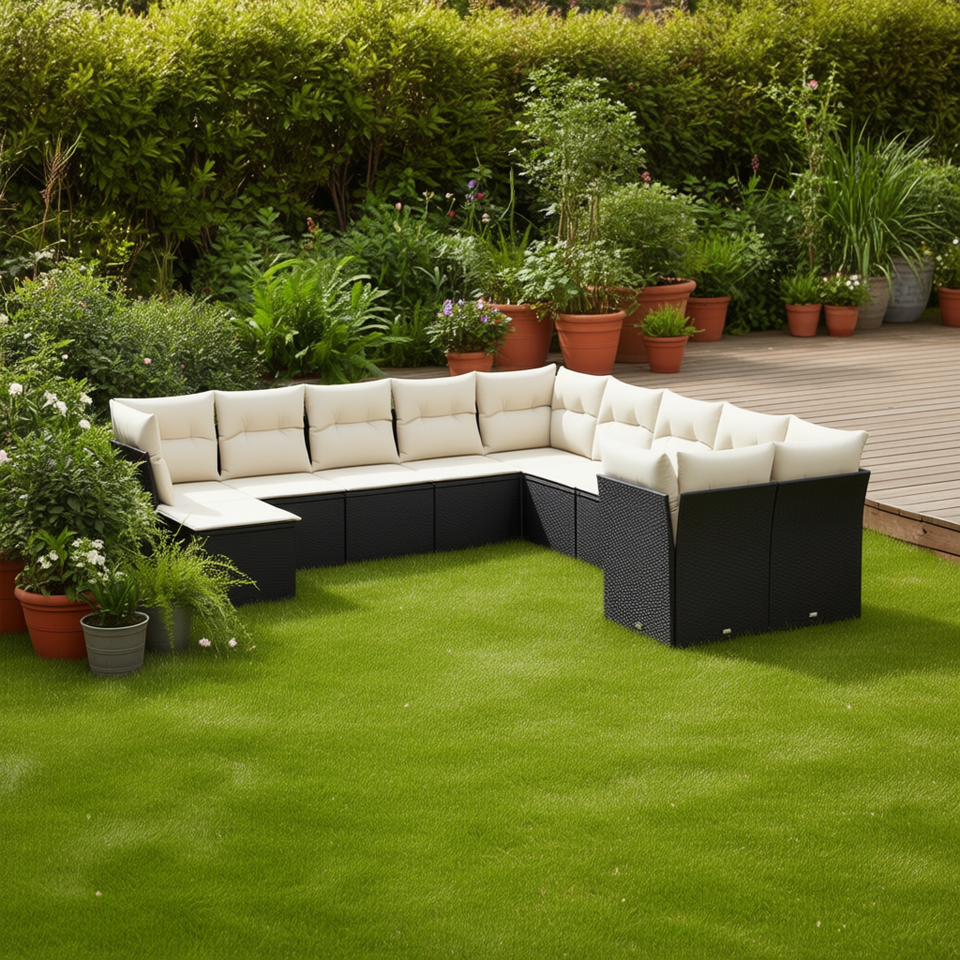Set Divano da Giardino Nero Crema 10 Posti in Rattan per Esterni, Arredamento Contemporaneo Resistente alle Intemperie