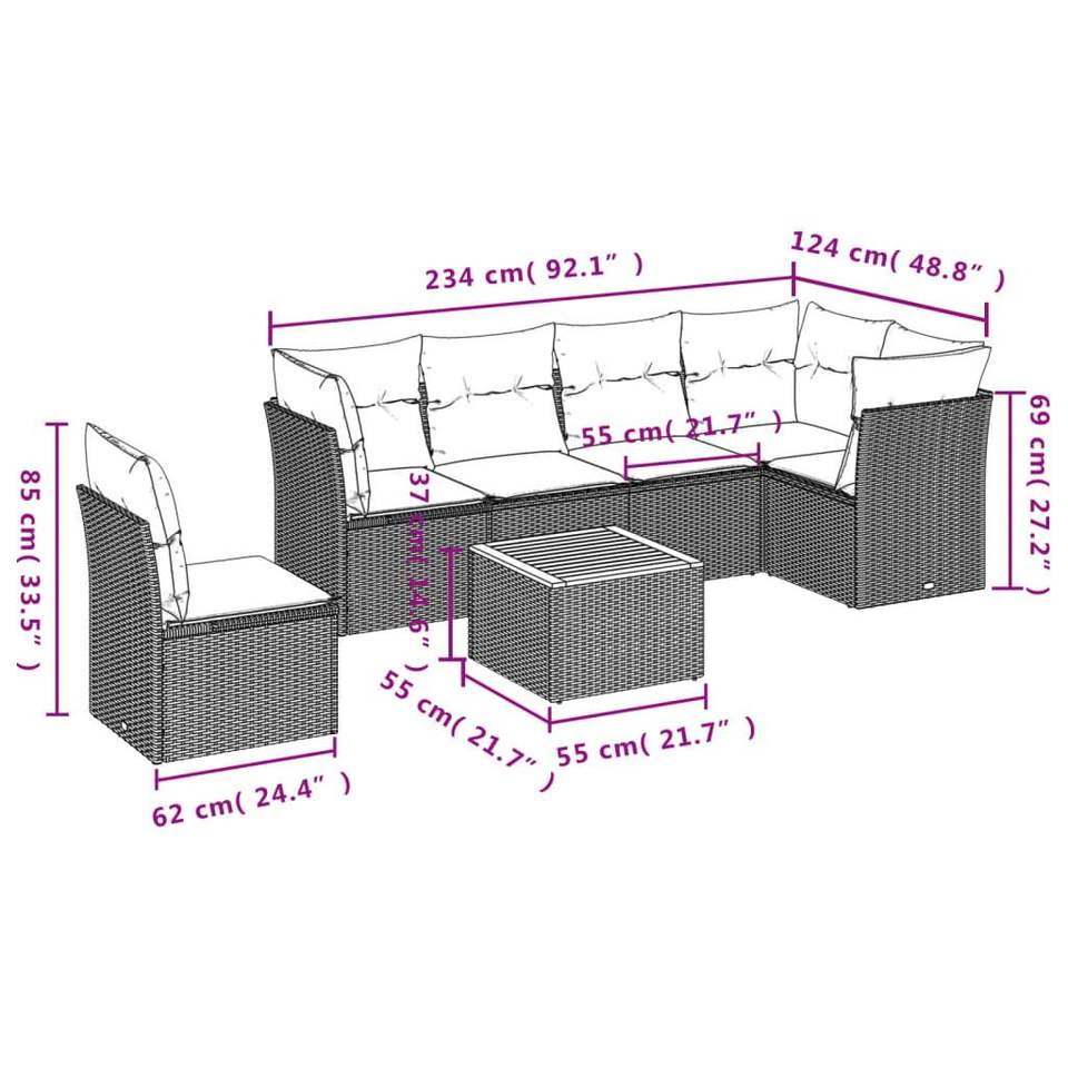 Set divano da giardino marrone bianco crema nero