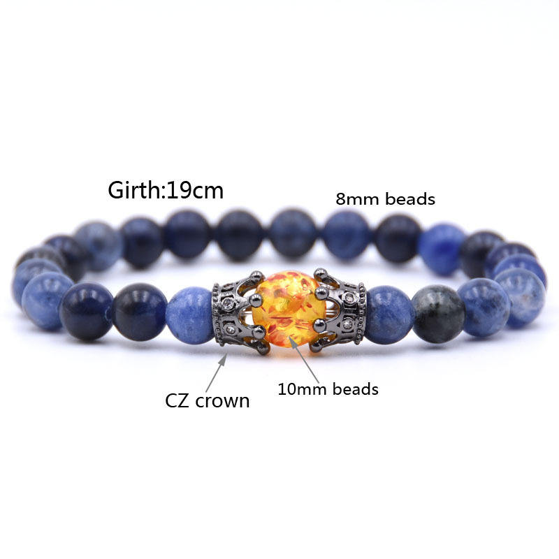 Bracciale elasticizzato con perline di pietre preziose corona nera Syn. Charms ambra 8mm protezione pietra guarigione quarzo cristallo elasticizzato perline