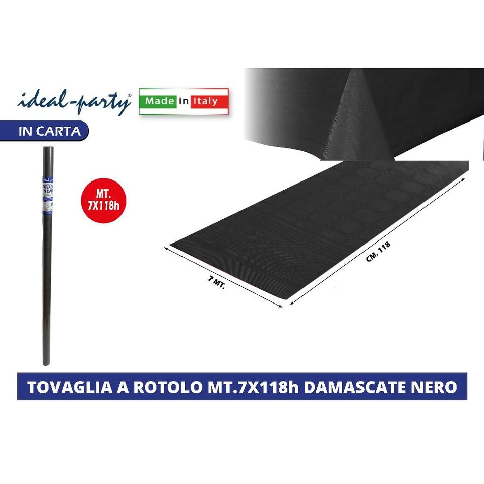 Tovaglia Nera Damascata in Rotolo 7x118m Elegante per Feste e Decorazioni