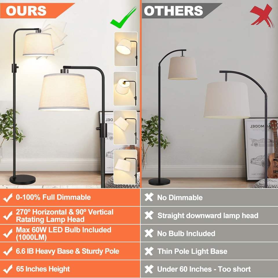 Lampada da terra nera dimmerabile con lampadina LED Edison da 1000 lumen inclusa