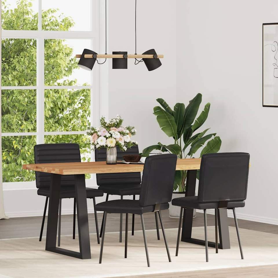 Set di 4 sedie da pranzo nere moderne in ecopelle imbottita con gambe in metallo, mobili per la casa