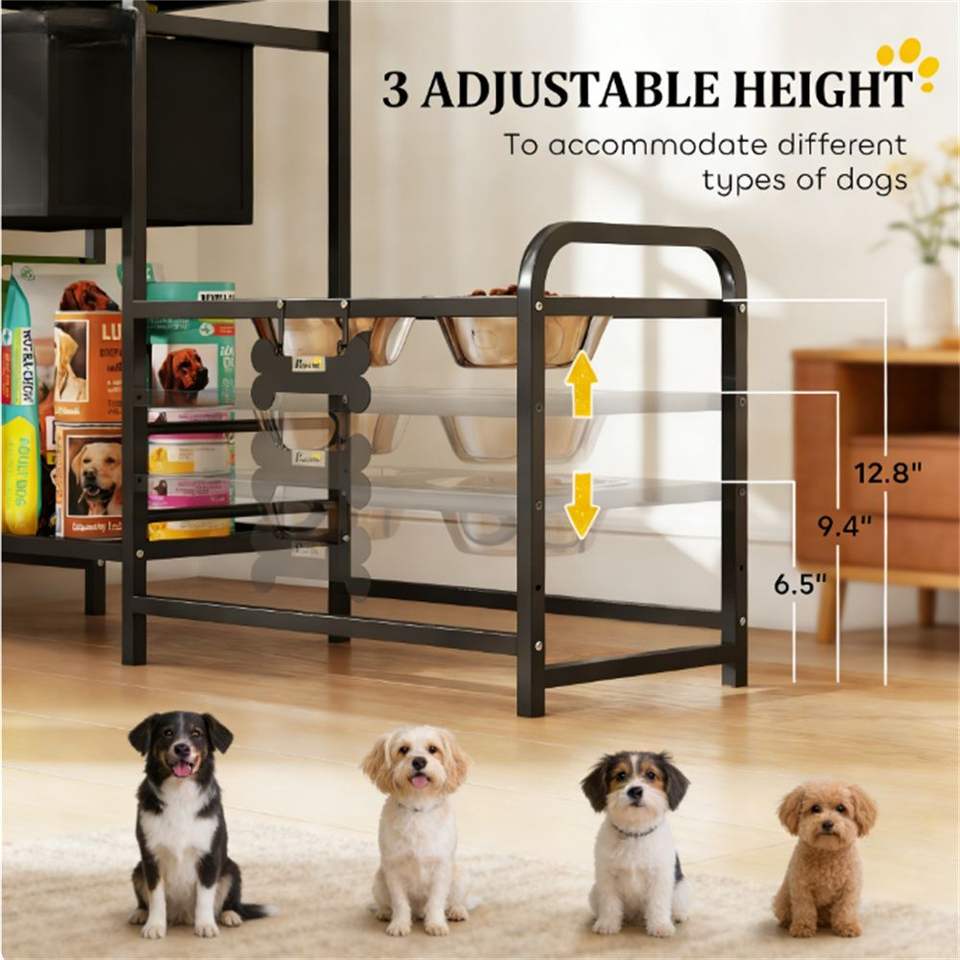 Porta Ciotole per Cani Nero, Supporto per Ciotole e Mangiatoie per Animali Domestici