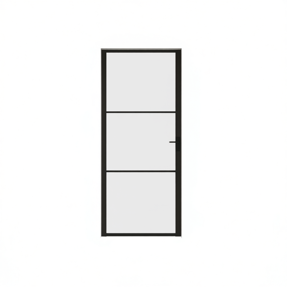 Black ESG Glass Aluminum Interior Slab Door 32.7x79.3 Inches Minimalist Design Sound Insulation Manual Opening