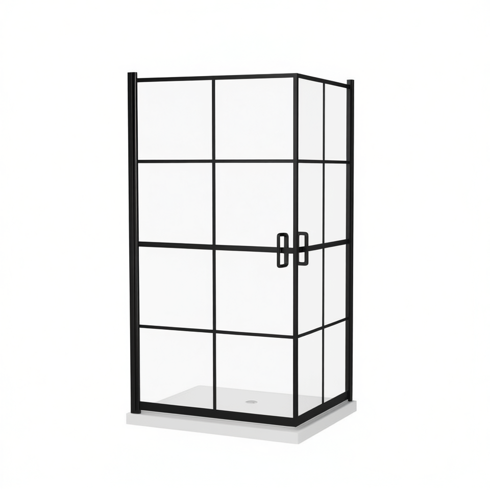 Box Doccia Nero ESG 45.7x55.1 Pollici con Telaio, Porta a Cerniera in Vetro Temperato, Rettangolare per Bagno