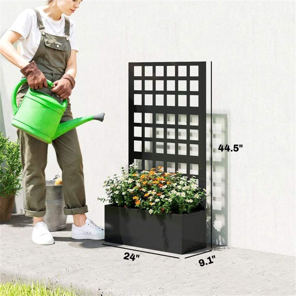 Fioriera rialzata nera e scaffale per piante, recinzione e traliccio durevoli, prodotto per cancelli