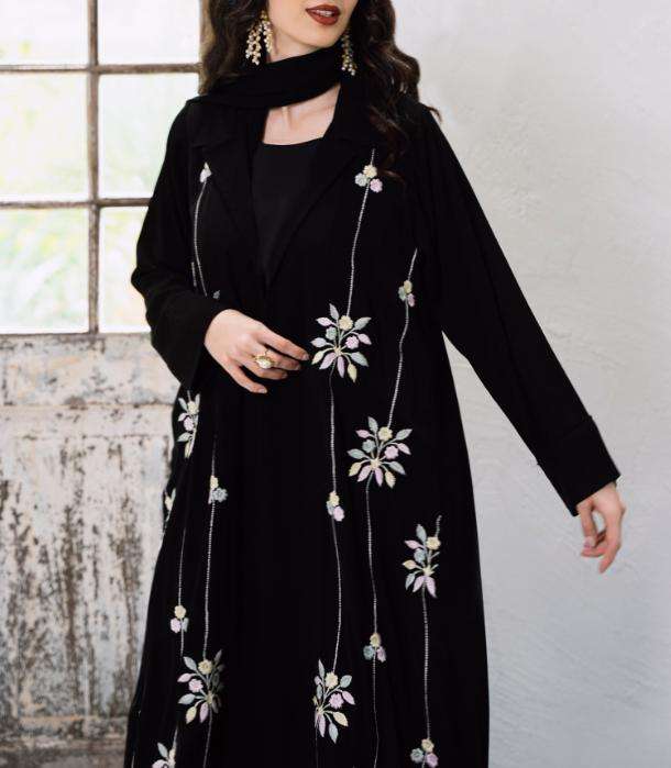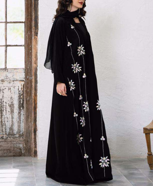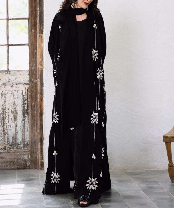 Abaya ricamato nero con foulard abbinato perfetto per ogni occasione abito da sera Cerep Nada