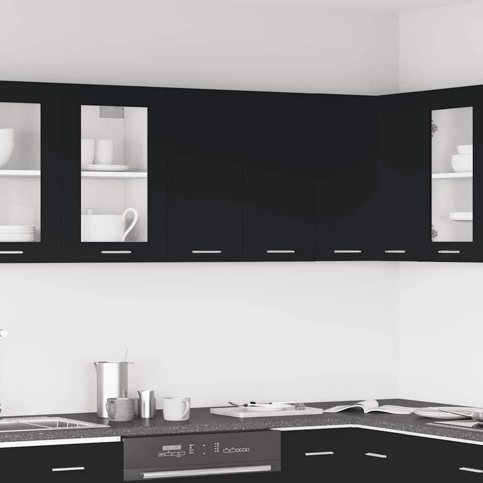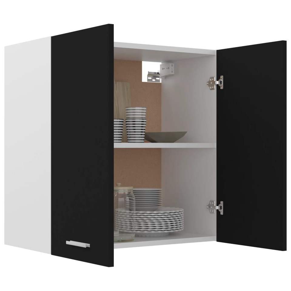 Black Engineered Wood Hanging Cabinet Medium Size for Kitchen Use