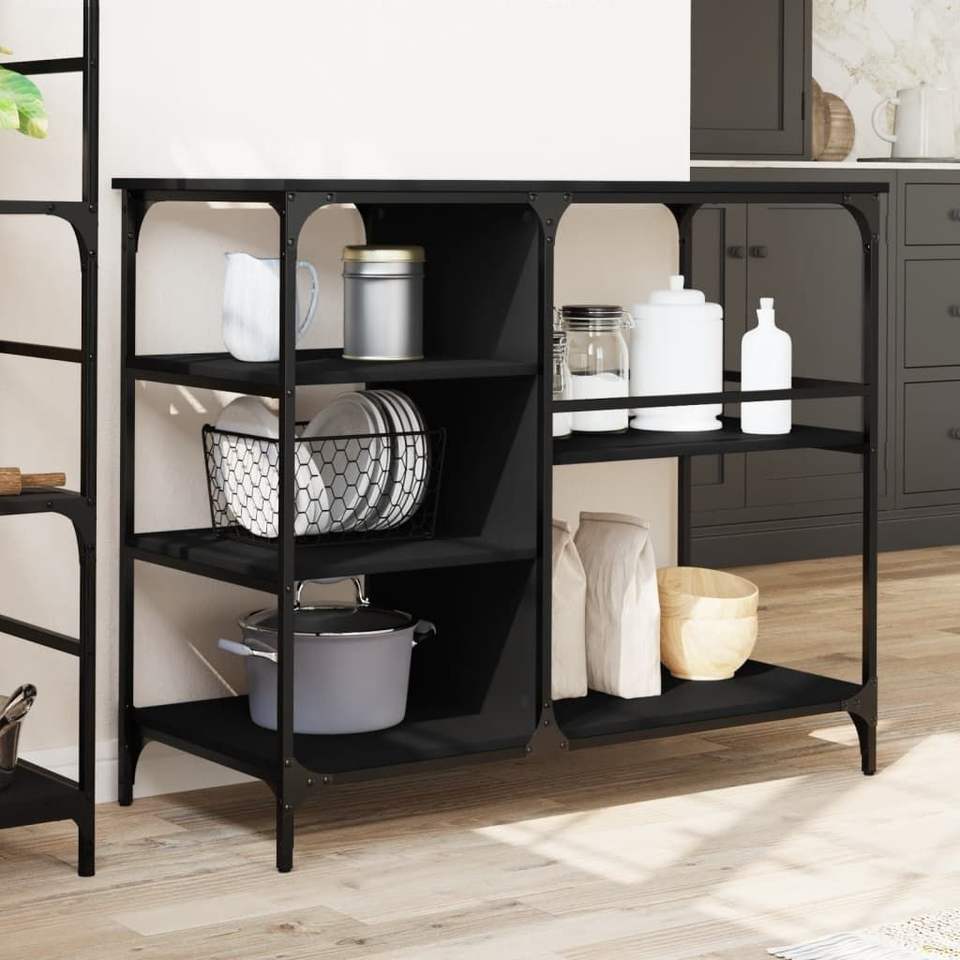 Black Engineered Wood Kitchen Trolley 39.4"x17.7"x35.2" Kitchen Islands & Carts