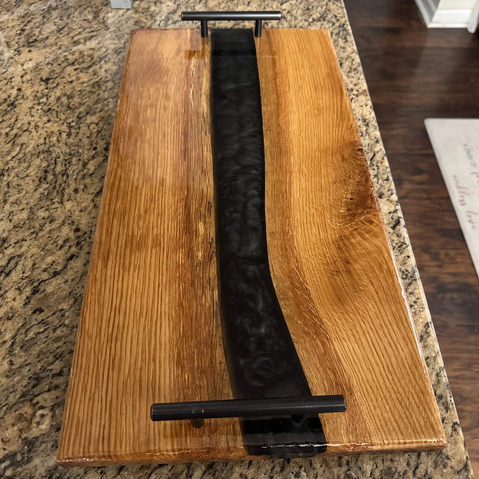 Black Epoxy Resin Oak Charcuterie Board Stylish River Design for Home Decor