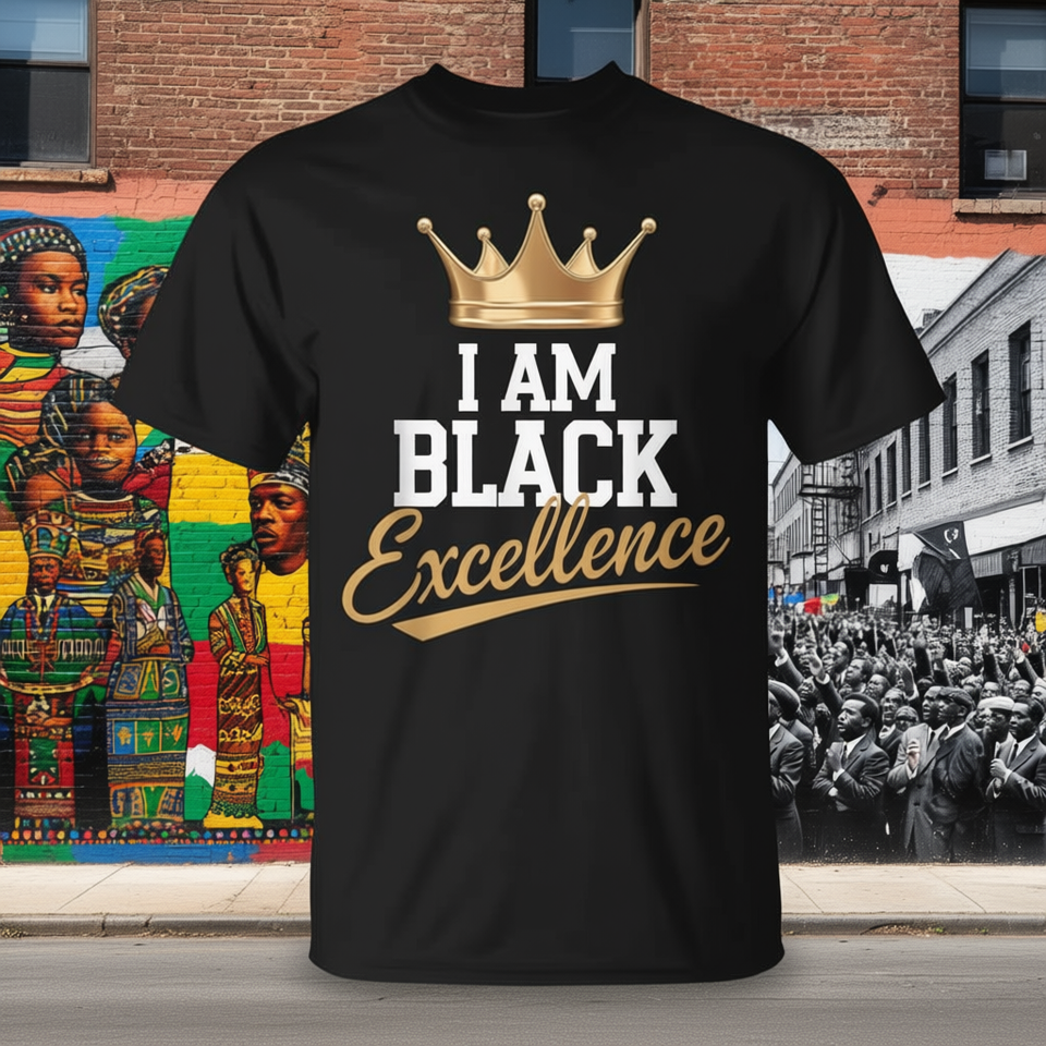 T-Shirt Afro Motivazionale Black Excellence Ispirata alla Storia Afroamericana per Abbigliamento Promozionale