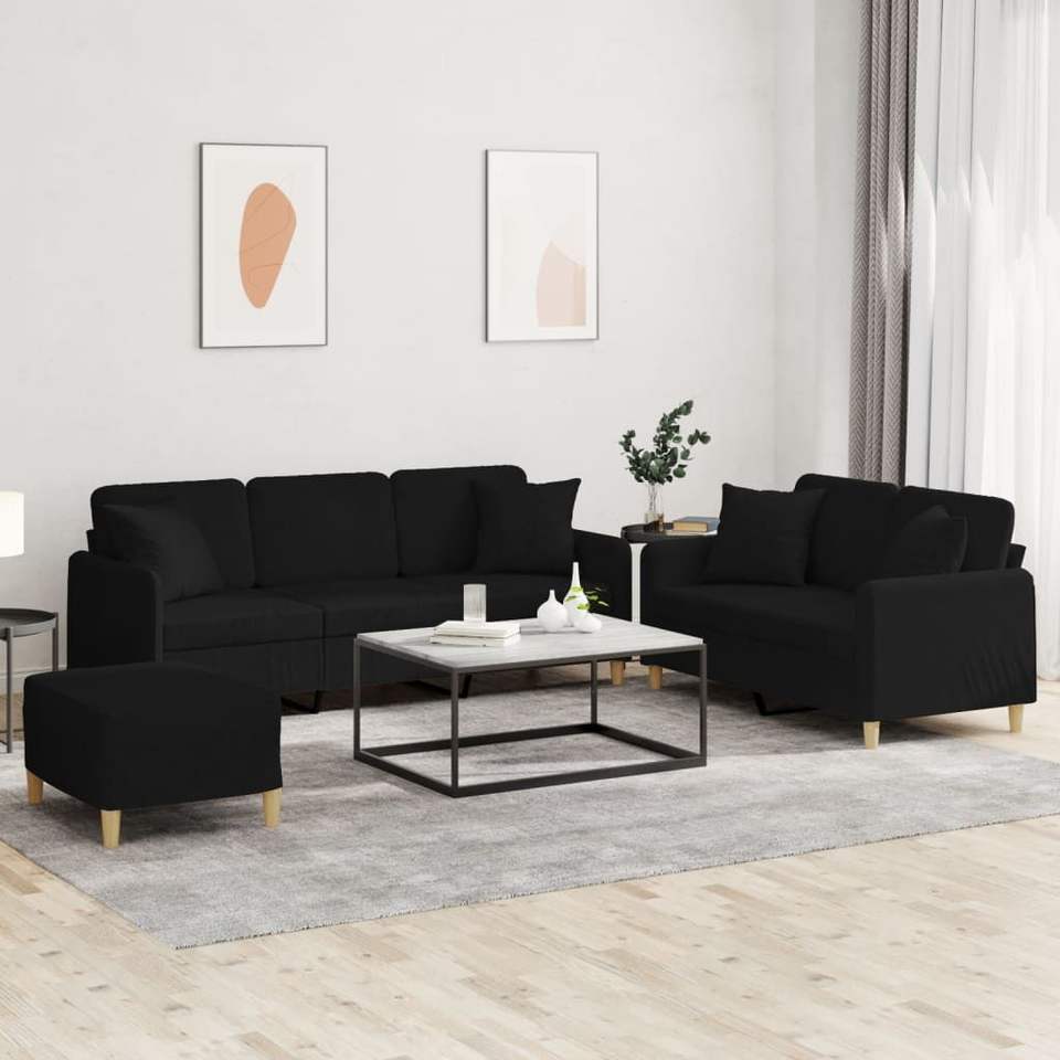 Set di Divani in Tessuto Nero 100% Poliestere con Struttura in Metallo e Compensato, Arredamento per Soggiorno