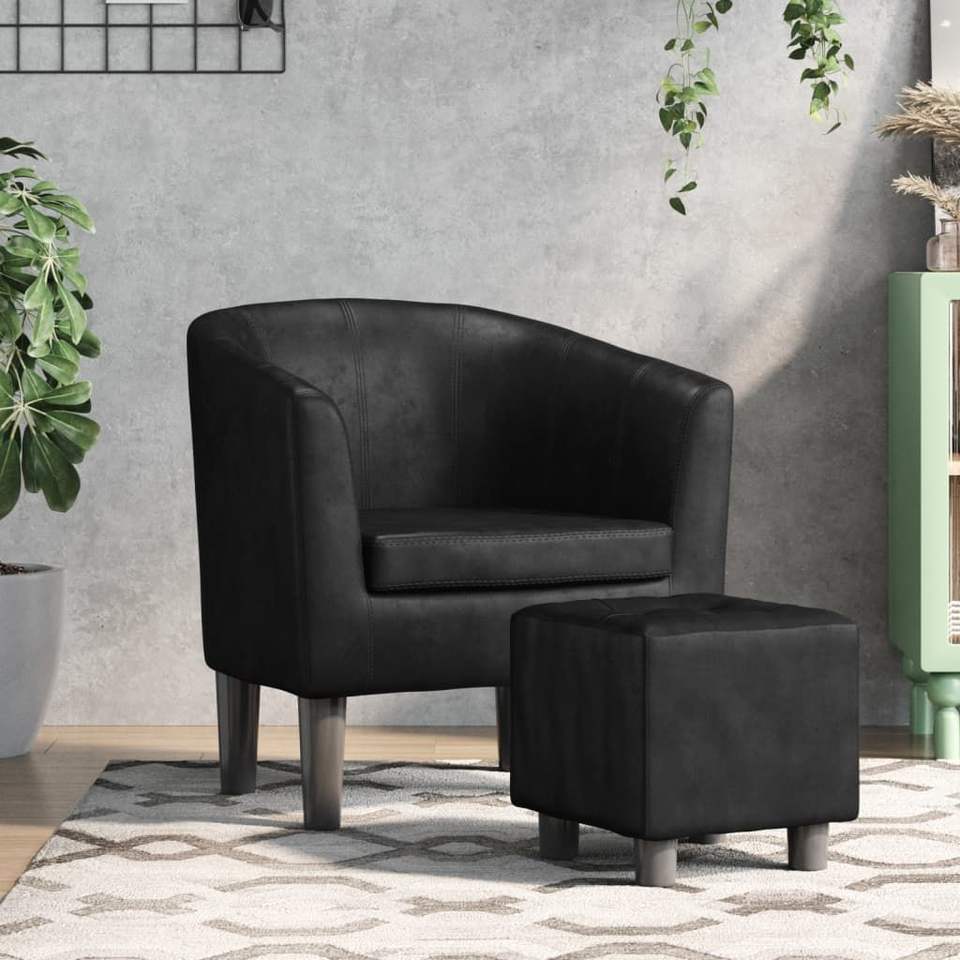Black Faux Leather Tub Chair with Pinewood Plywood Foam Compact Stylish Chaise Lounge