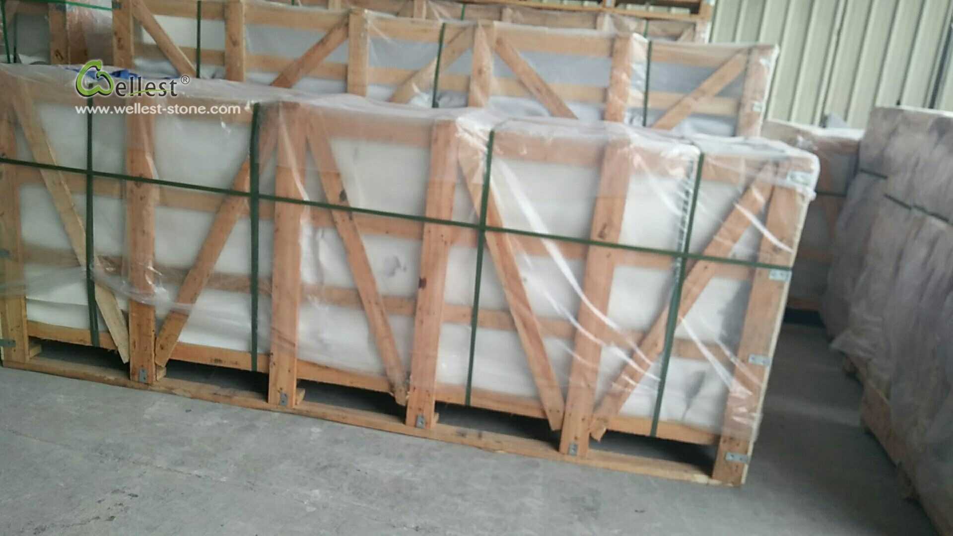 Seaworthy wooden crates with internal plastic film to keep dust and rain away for Super White Quartz countertop