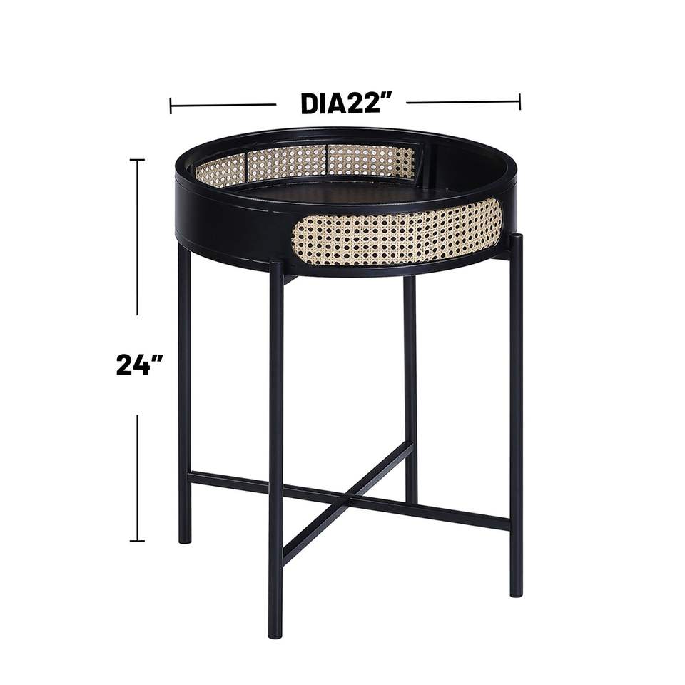 Tavolino Rotondo con Finitura Nera, Piano Aperto e Gambe in Metallo per Arredamento Soggiorno