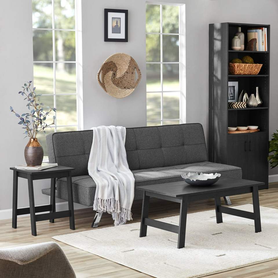 Tavolino Quadrato in Legno con Finitura Nera per Arredamento Soggiorno
