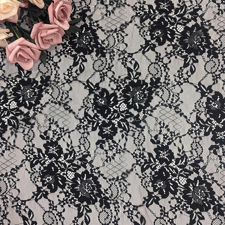 Black Floral Embroidered Lace Fabric 100% Polyester Mesh Tulle for Wedding and Dress Dress Garment Decoration