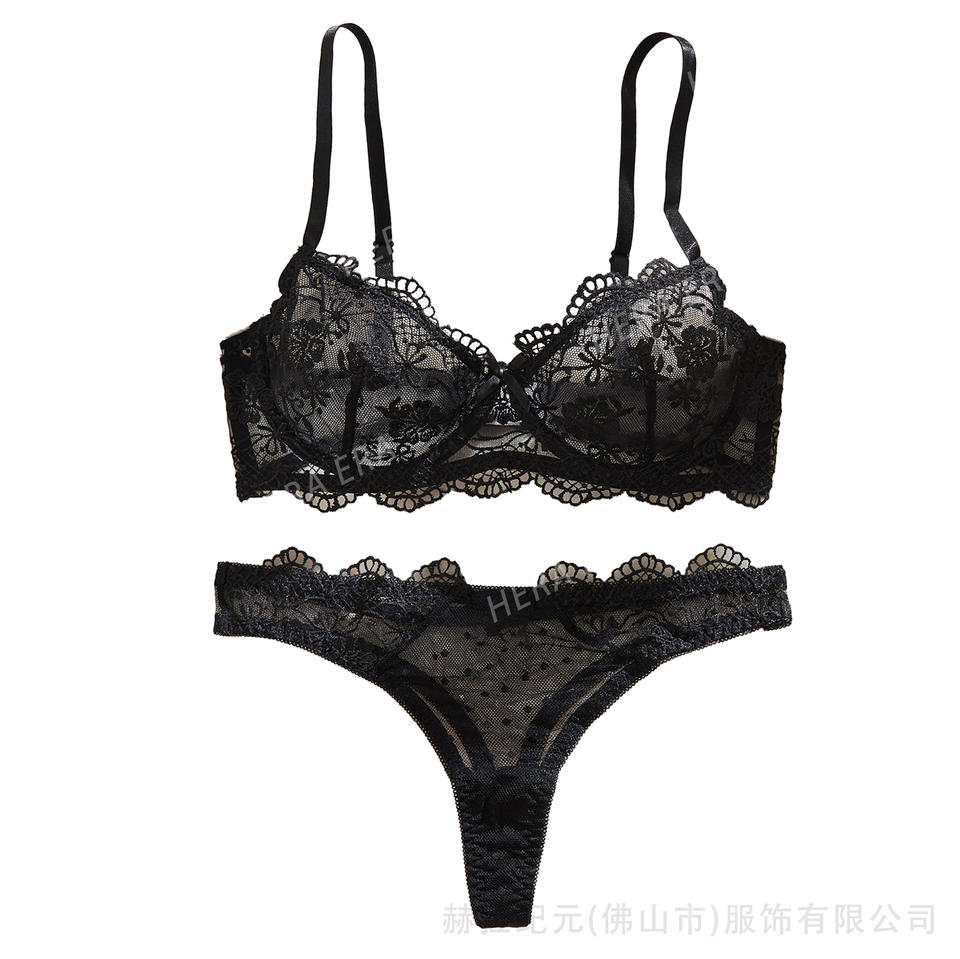 Product Name:Sexy Black Floral Embroidered Sheer 2-Piece Bra Set