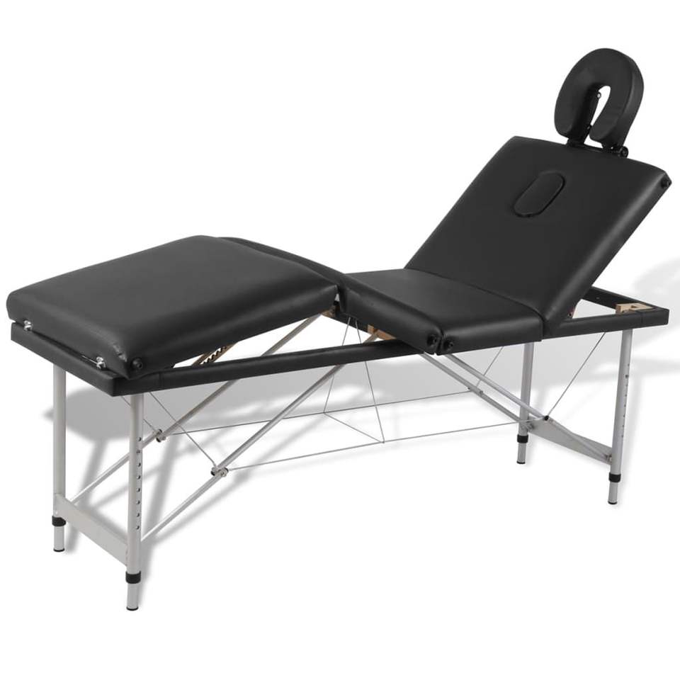 Lettino da massaggio pieghevole nero con telaio in alluminio 4 zone