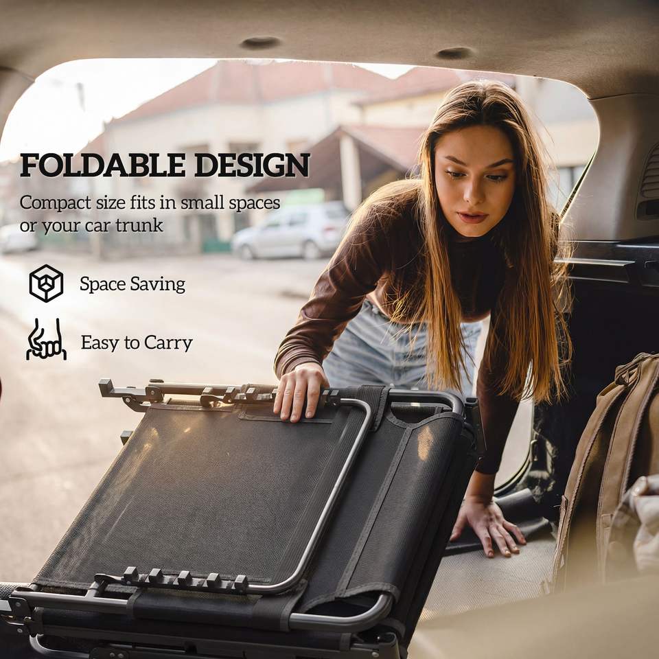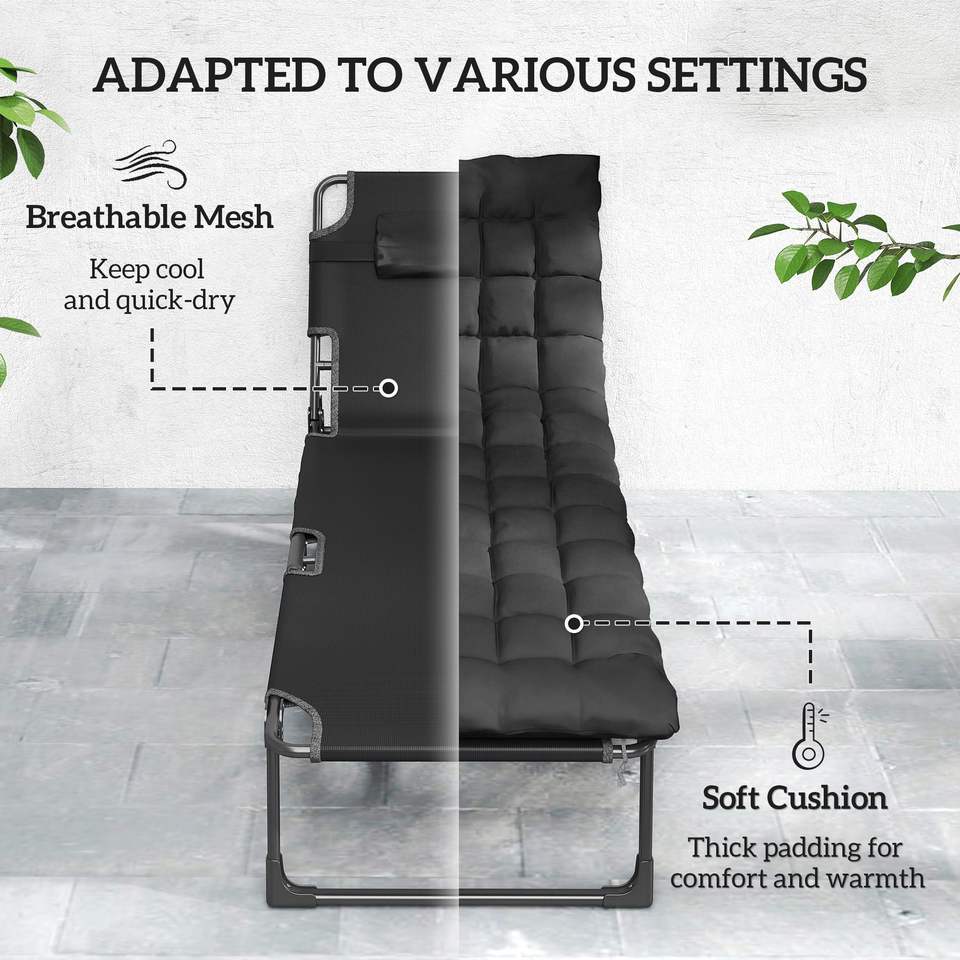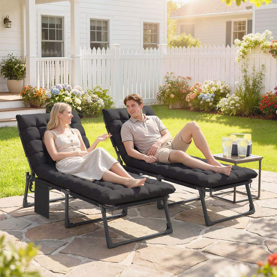 Set di 2 Sdraio Pieghevoli Nere da Esterno con 5 Posizioni dello Schienale, Cuscini e Tasca Laterale